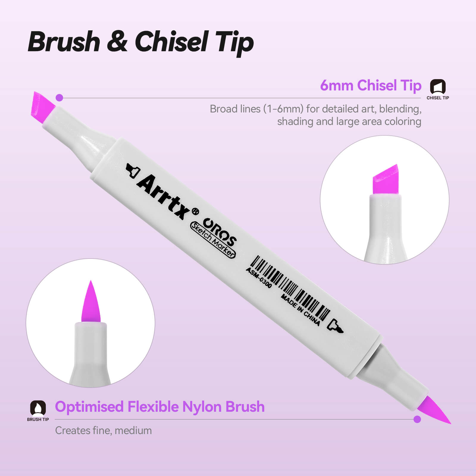 Arrtx OROS 66 Alcohol Markers Pastel Colors Paint Markers Dual Tip