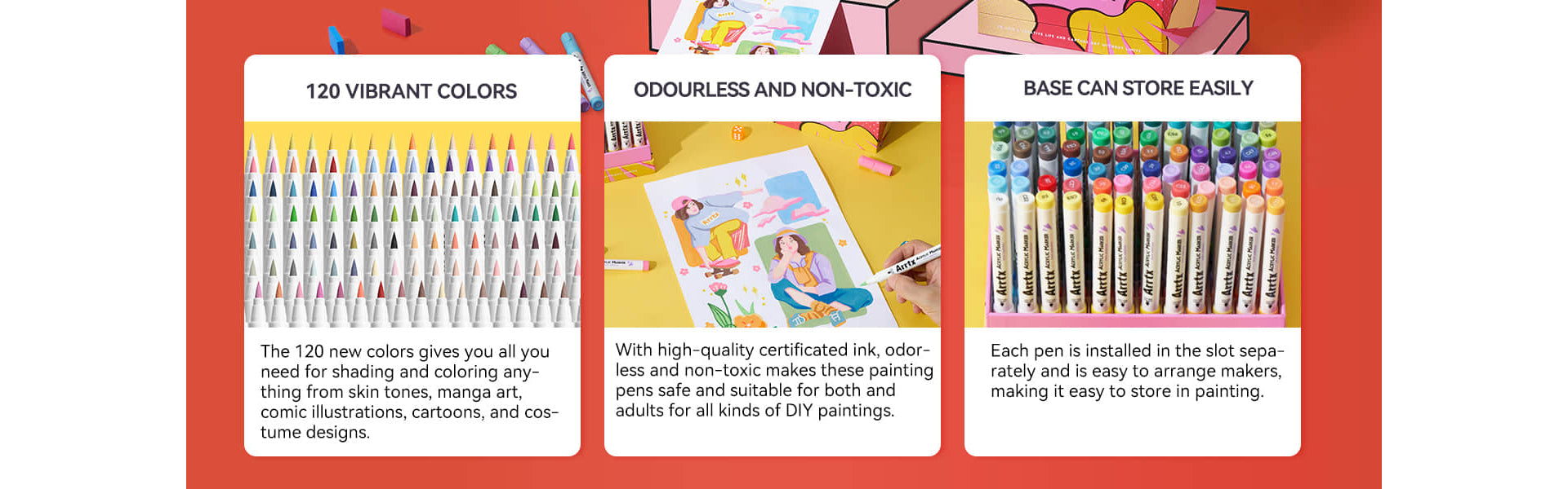 • 120 Anime-Inspired Color: Elevate your artistry with 120 premium arrtx acrylic markers, expertly curated for anime enthusiasts and professional creators. From vivid primaries to nuanced pastels, this expansive palette unlocks limitless possibilities for character design, background art, and studio-quality illustration.
