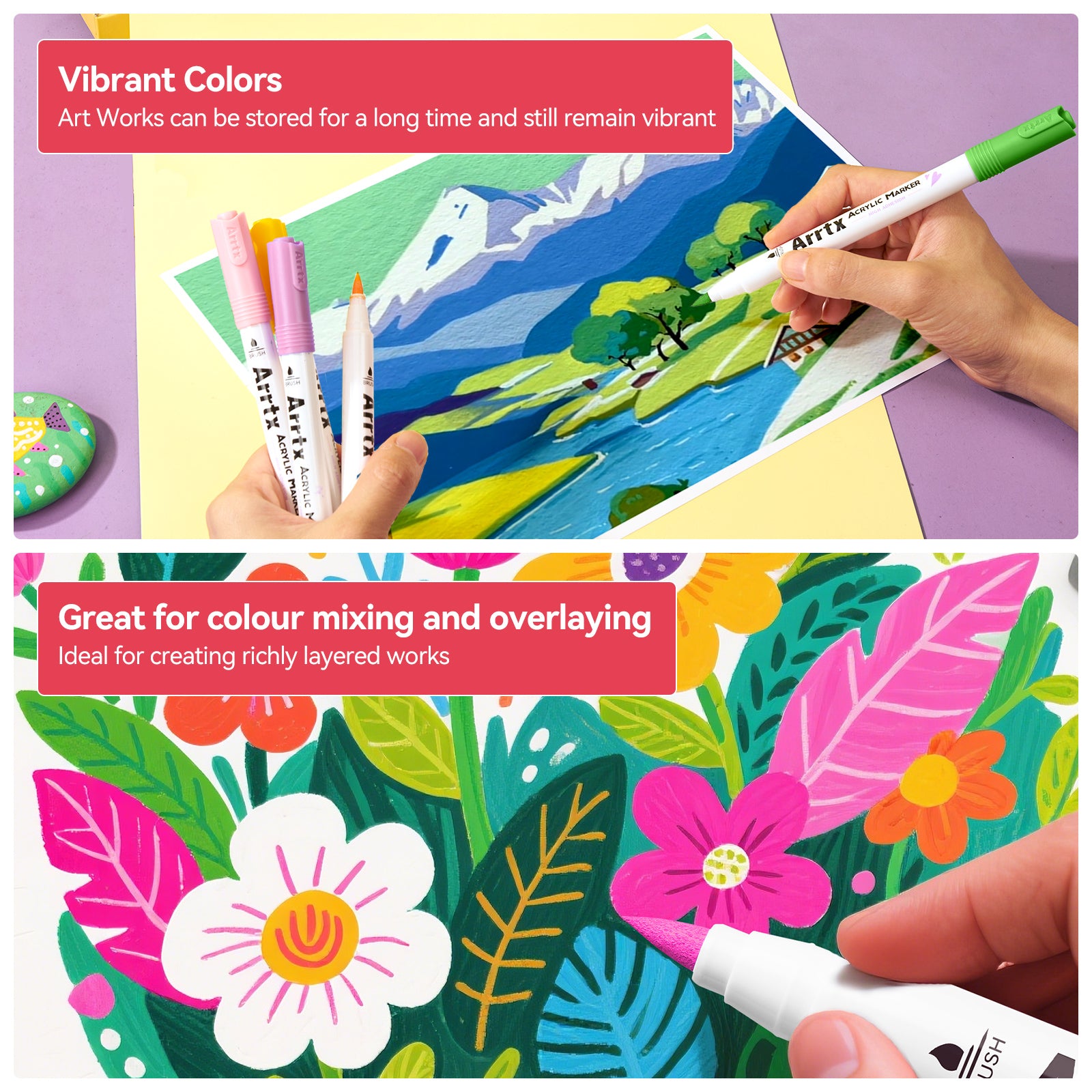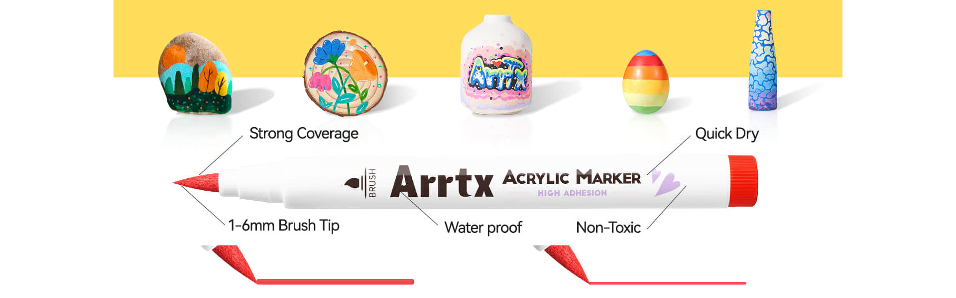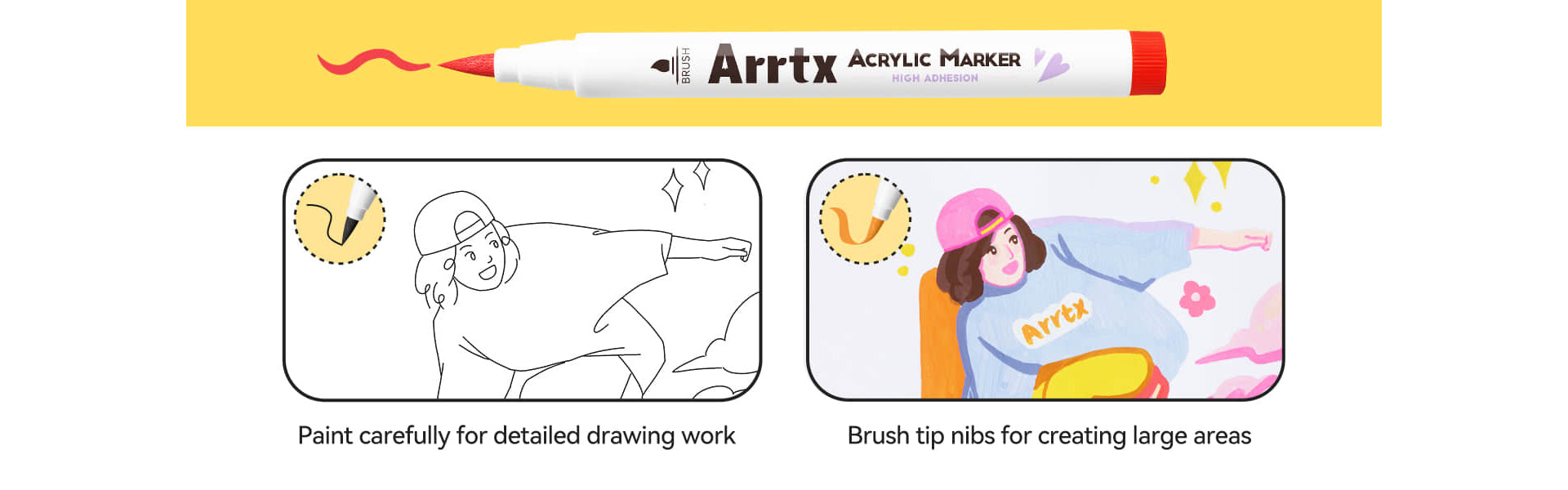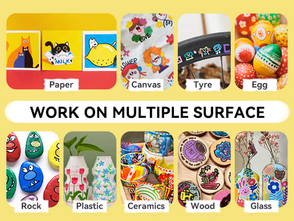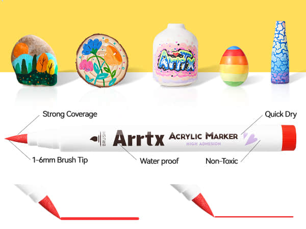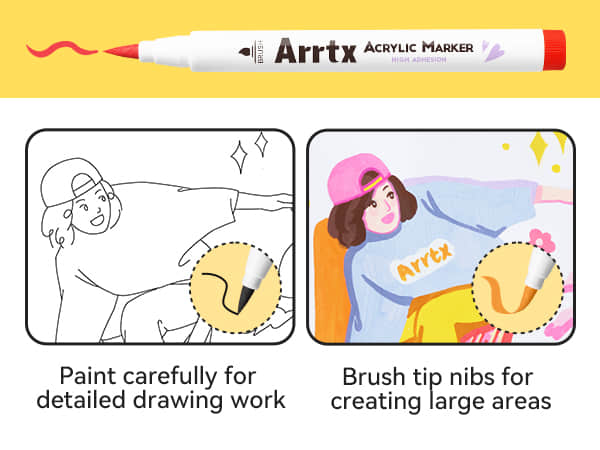 • Dual-Purpose Brush Tips:Achieve precision or bold coverage with versatile brush nibs engineered for detail work and sweeping strokes. Perfect for anime line art, shading, murals, and mixed-media projects on paper, canvas, wood, or ceramics.
