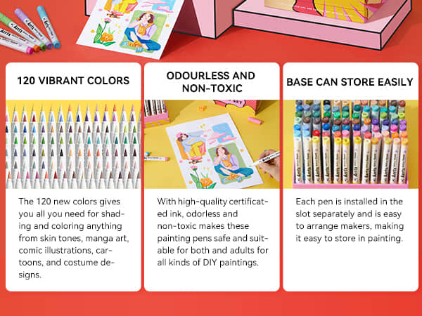 Arrtx 120A Anime Colors Acrylic Markers Brush Tip Paint Markers