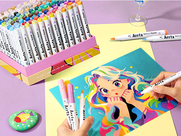 Arrtx 90A Colors Acrylic Marker Pens Paint Brushes