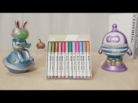 Arrtx 12 couleurs métalliques marqueurs de peinture acrylique pointe de pinceau stylos de peinture