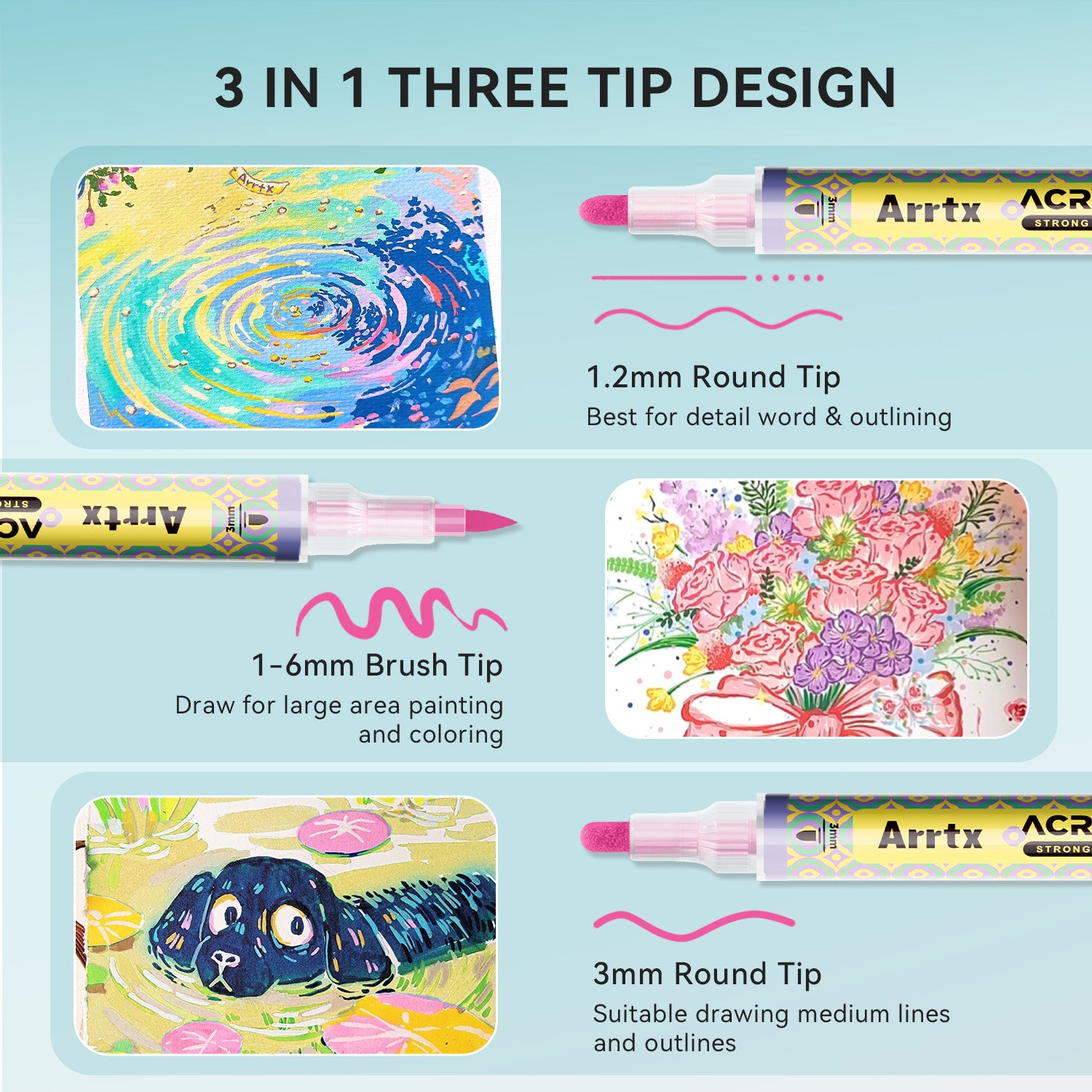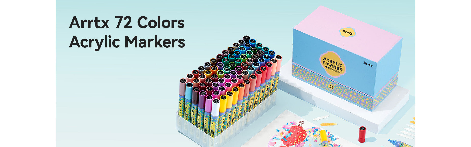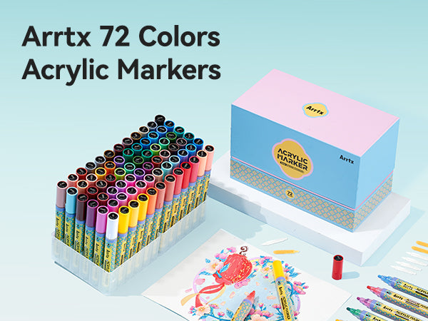 Arrtx 72 Colors Acrylic Paint Markers 3mm Medium Tip with 34 replacement Tips