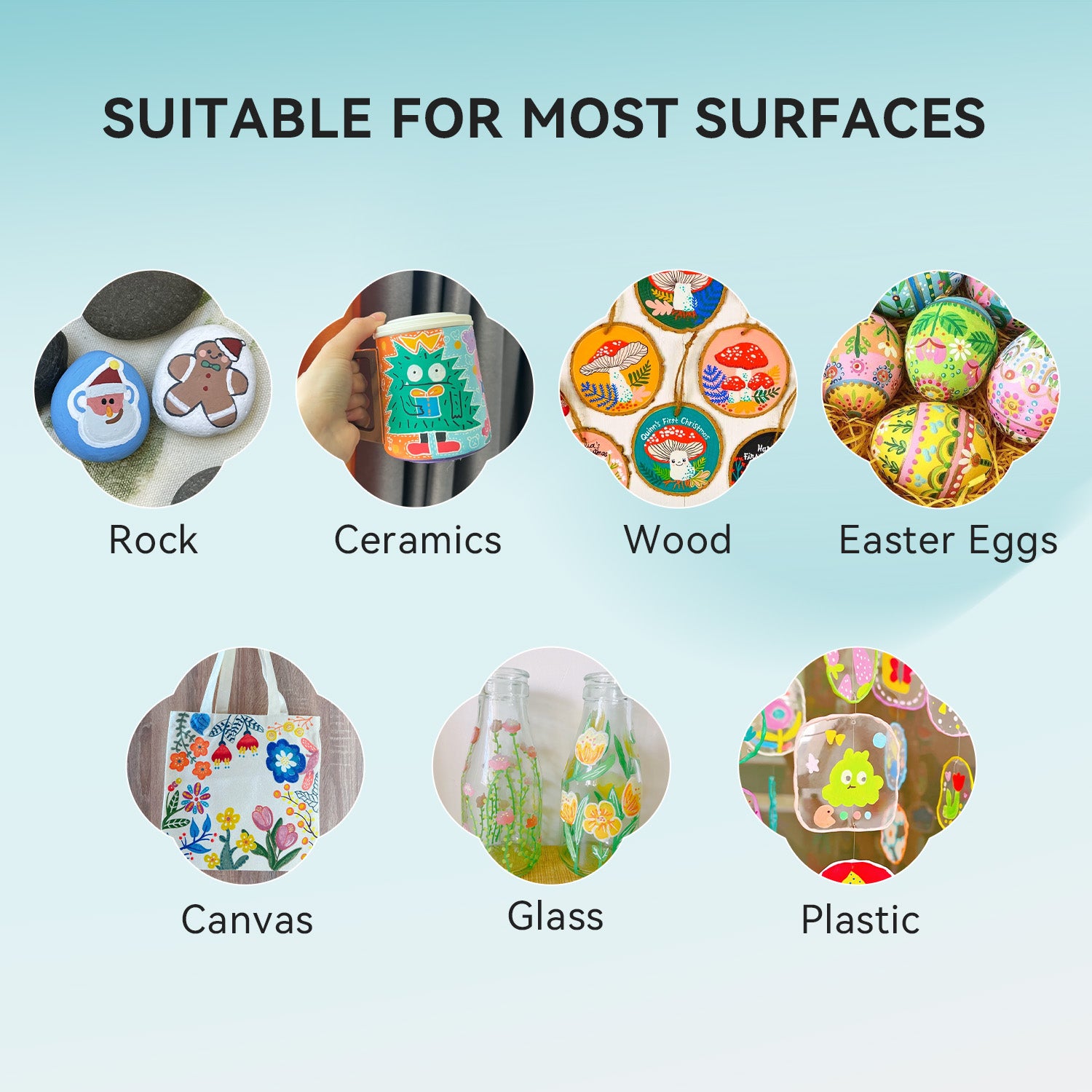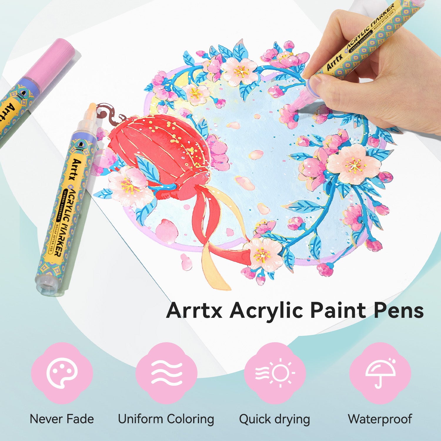 • Quick Drying & Water-Based: Say goodbye to smudges and smears! As our Arrtx acrylic paint pens are made with vibrant acrylic ink, they dry quickly to produce a long-lasting, ensures your creations stay crisp and clean.
