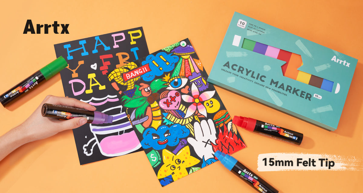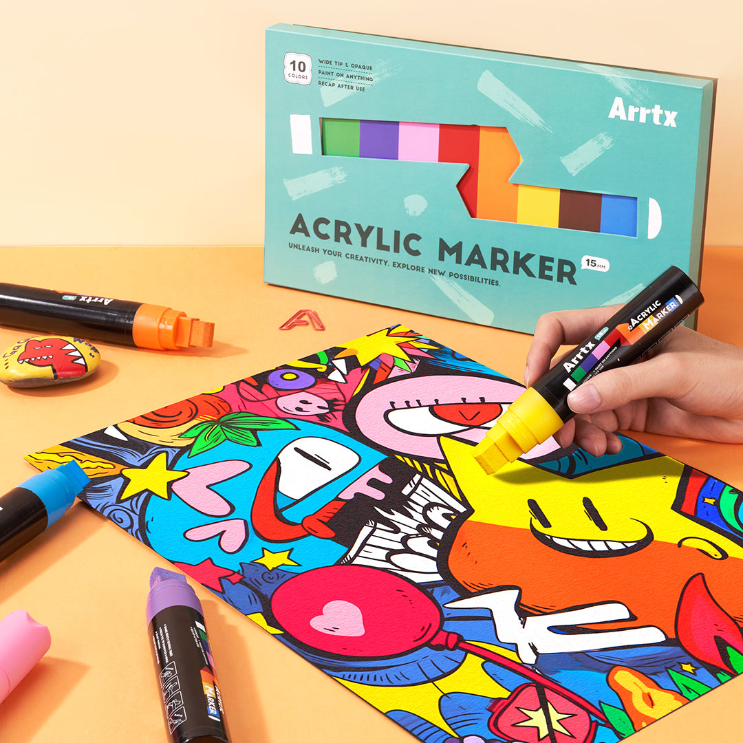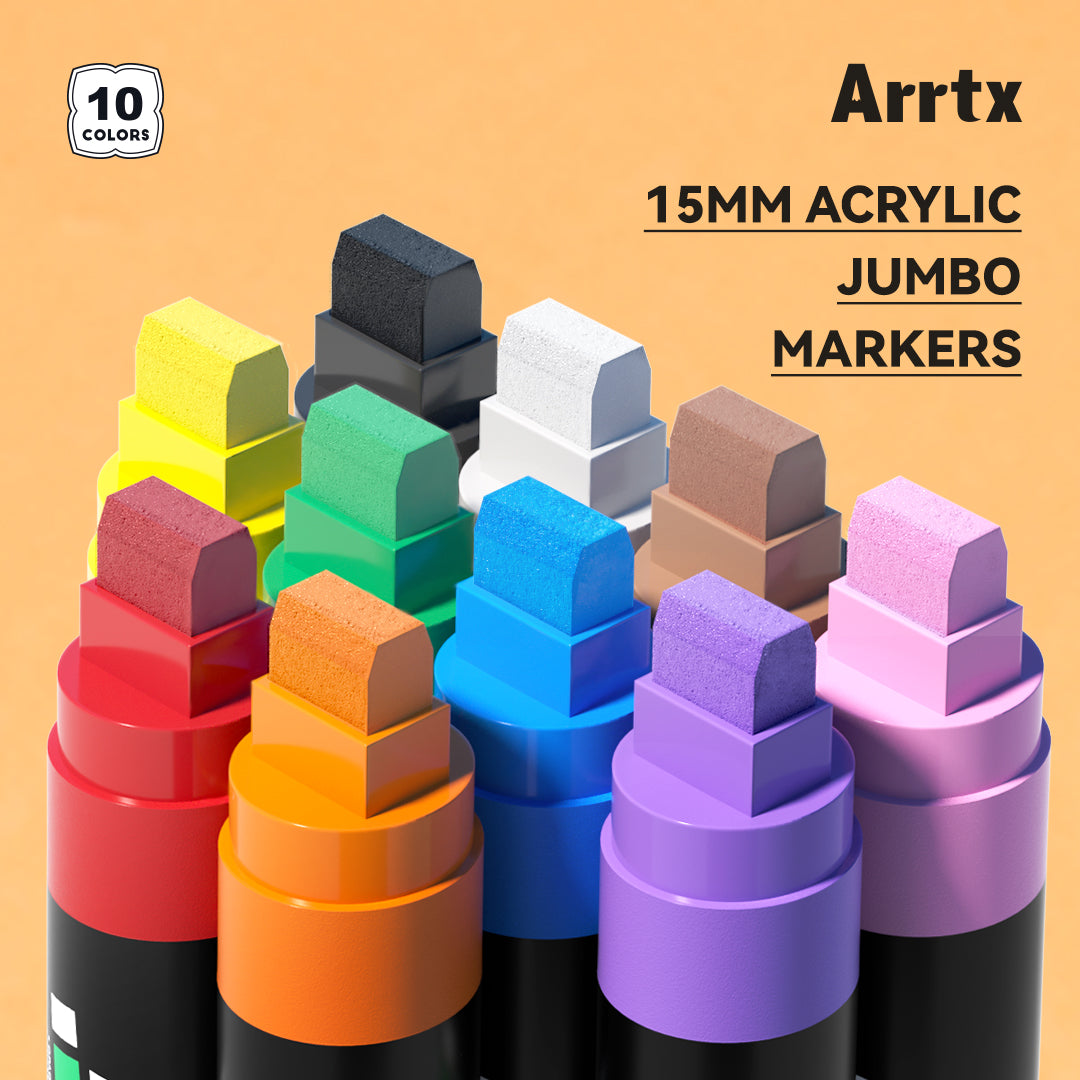 Arrtx 10 Colors 15mm Acrylic Jumbo Markers, Permanent When Dry, Odorless, Acid-Free