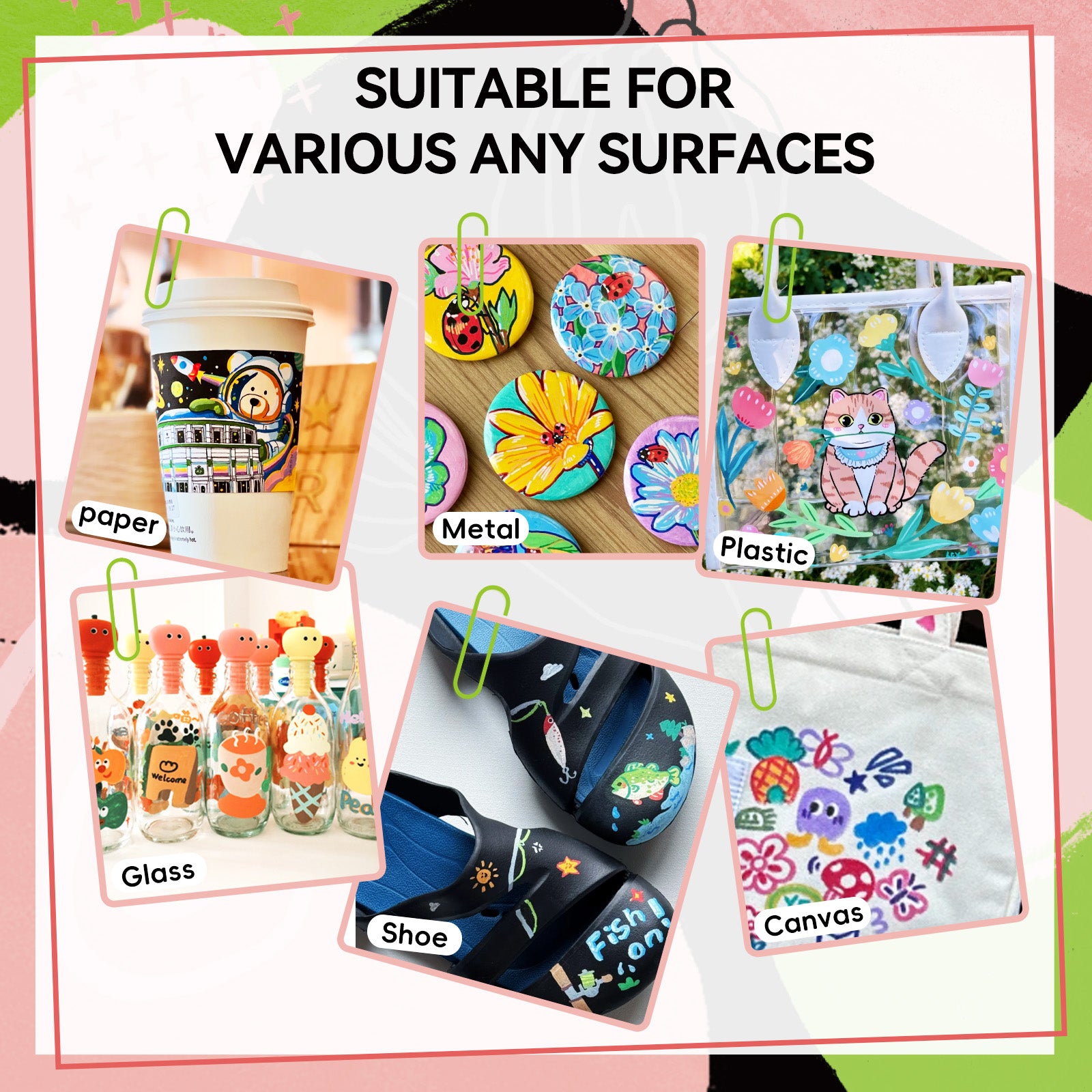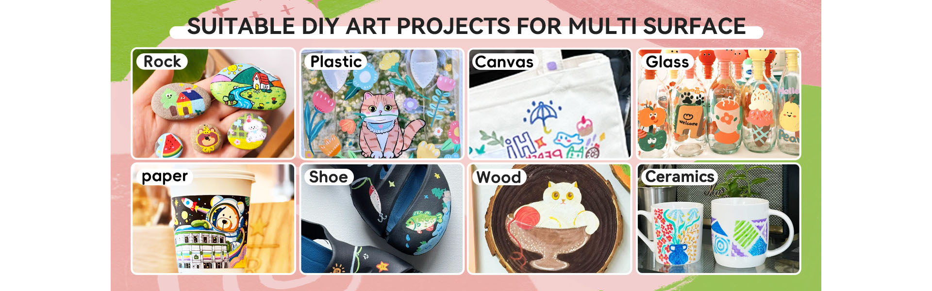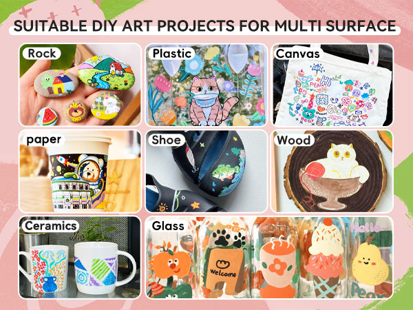 This acrylic marker set is designed with premium ink, you can start DIY projects on many common surfaces, such as glass, rock, canvas, wood, etc. It will never fade and is long-lasting and durable.
