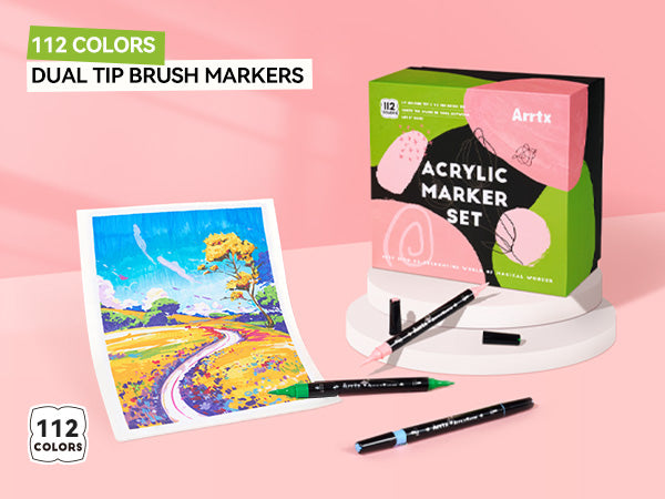 Arrtx 112 Colors Acrylic Paint Markers Dual Tip Paint Pens