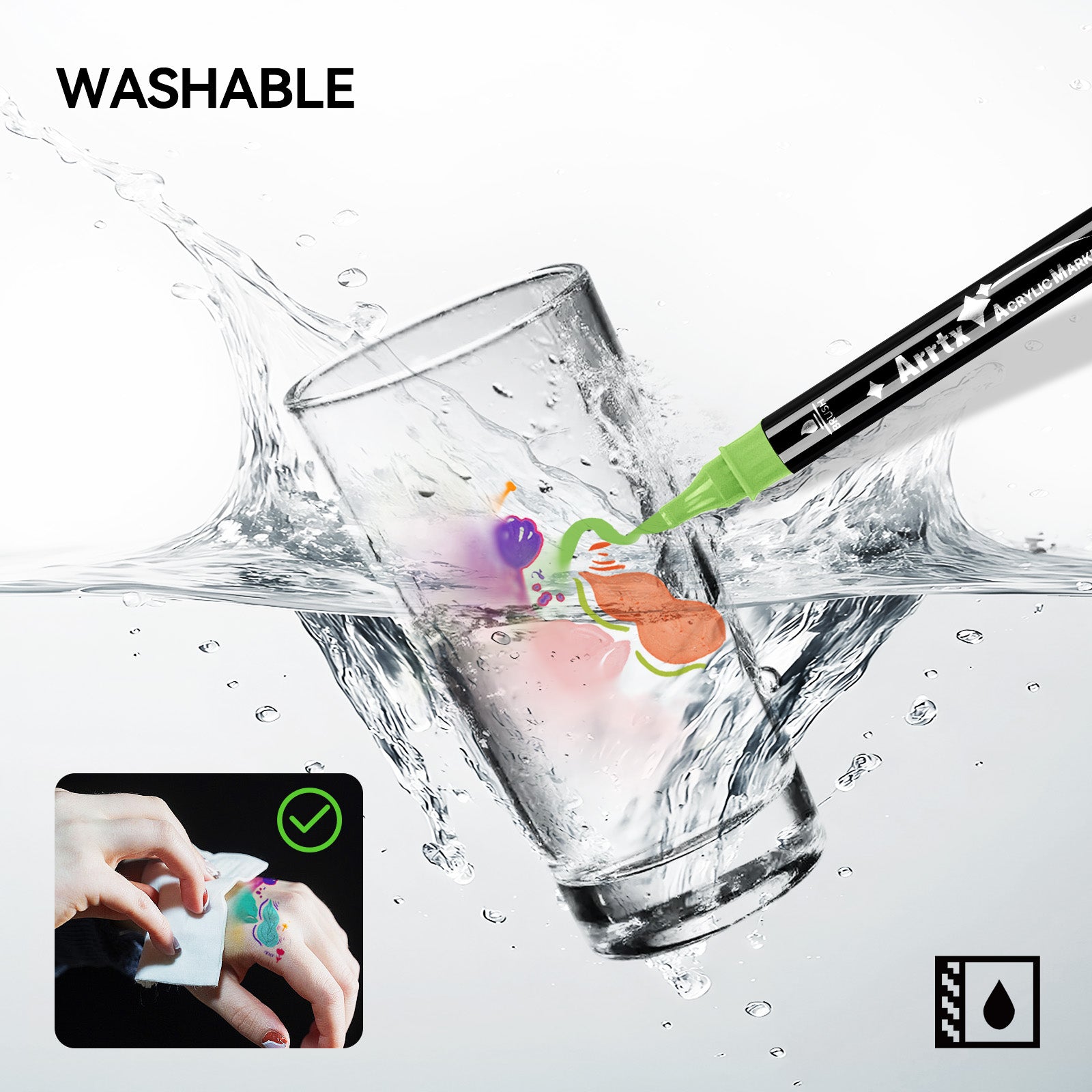 Works well on Multi Surfaces: Arrtx drawing markers set provides water-based smooth ink for a variety of surfaces, including rock painting, metal, paper, wood, plastic, canvas, fabrics, ceramics, and more. Warmly tips: If you need to put your artwork outdoors or in water, it is recommended to spray sealant after drying, which avoids being reactivated by water and smears.