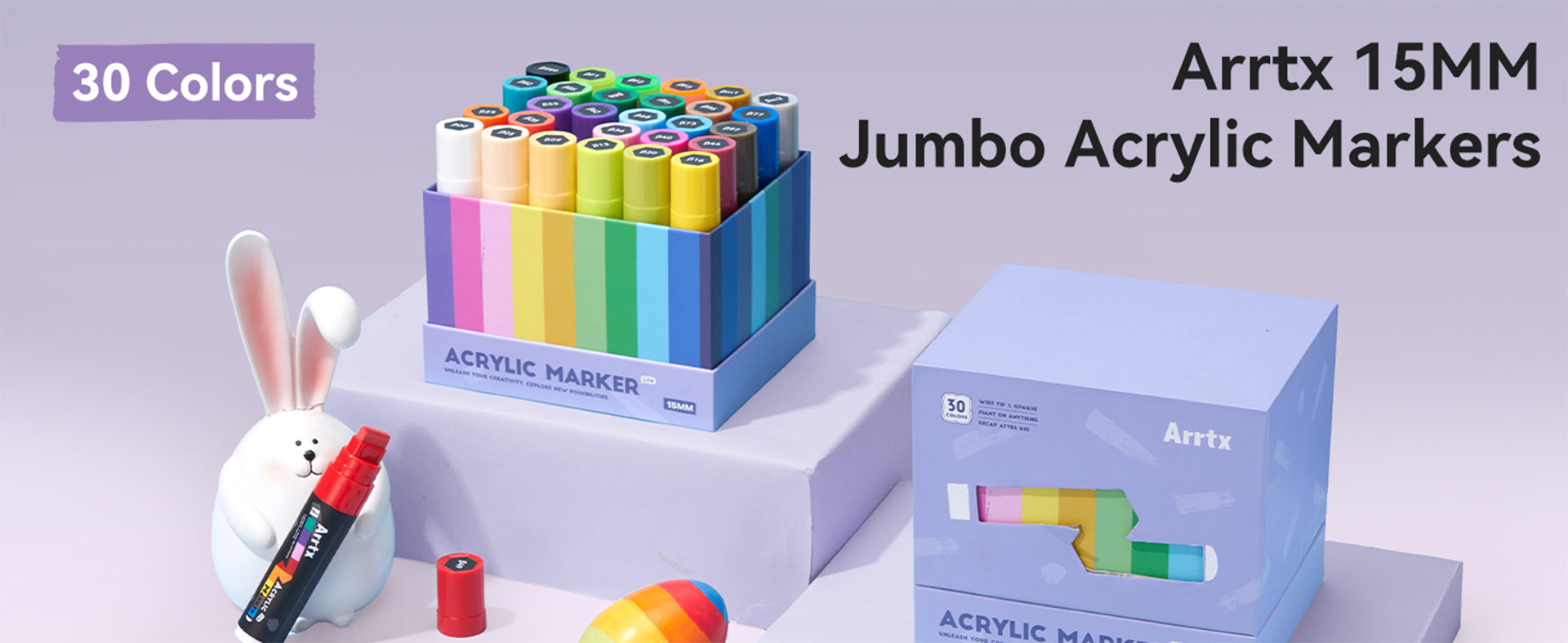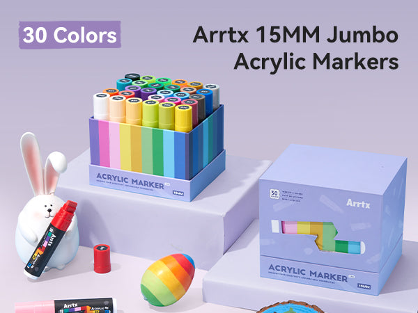 Arrtx 30 Colors Acrylic Markers Jumbo 15mm Tip Paint Markers