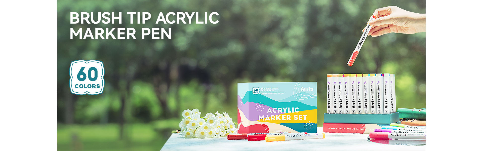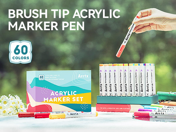 Arrtx 60C Colors Acrylic Paint Markers Brush Tip Art Supplies