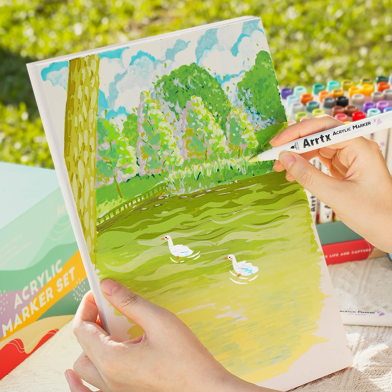 • Non-toxic and Safe: Arrtx drawing markers set adopts water-based environmental protection pigment ink, which is non-toxic, tasteless, waterproof, and high temperature resistant. With high-quality certificated ink makes these painting pens safe and suitable for adults for all kinds of DIY paintings.