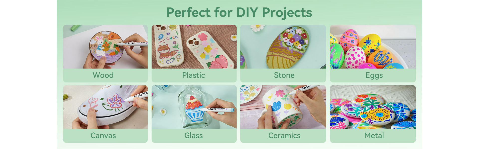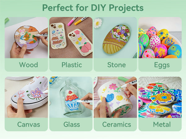 • Quik Dry and Waterproof: The highly pigmented paint is highly covering, water-resistant, and abrasion-proof proof allowing the application to any surface. Arrtx acrylic paint pens are water-based ink. These paint markers flow without flooding or jamming, and are permanent when dry. Note: Please tighten the cap and leave the pen with the tip facing down if you don't use them.