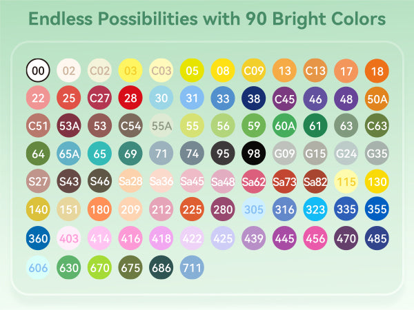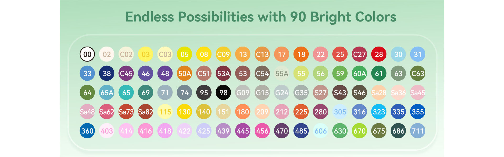 Compared to the Arrtx 90A set, this set inherits the 90A's 35 colors and adds 24 new colors