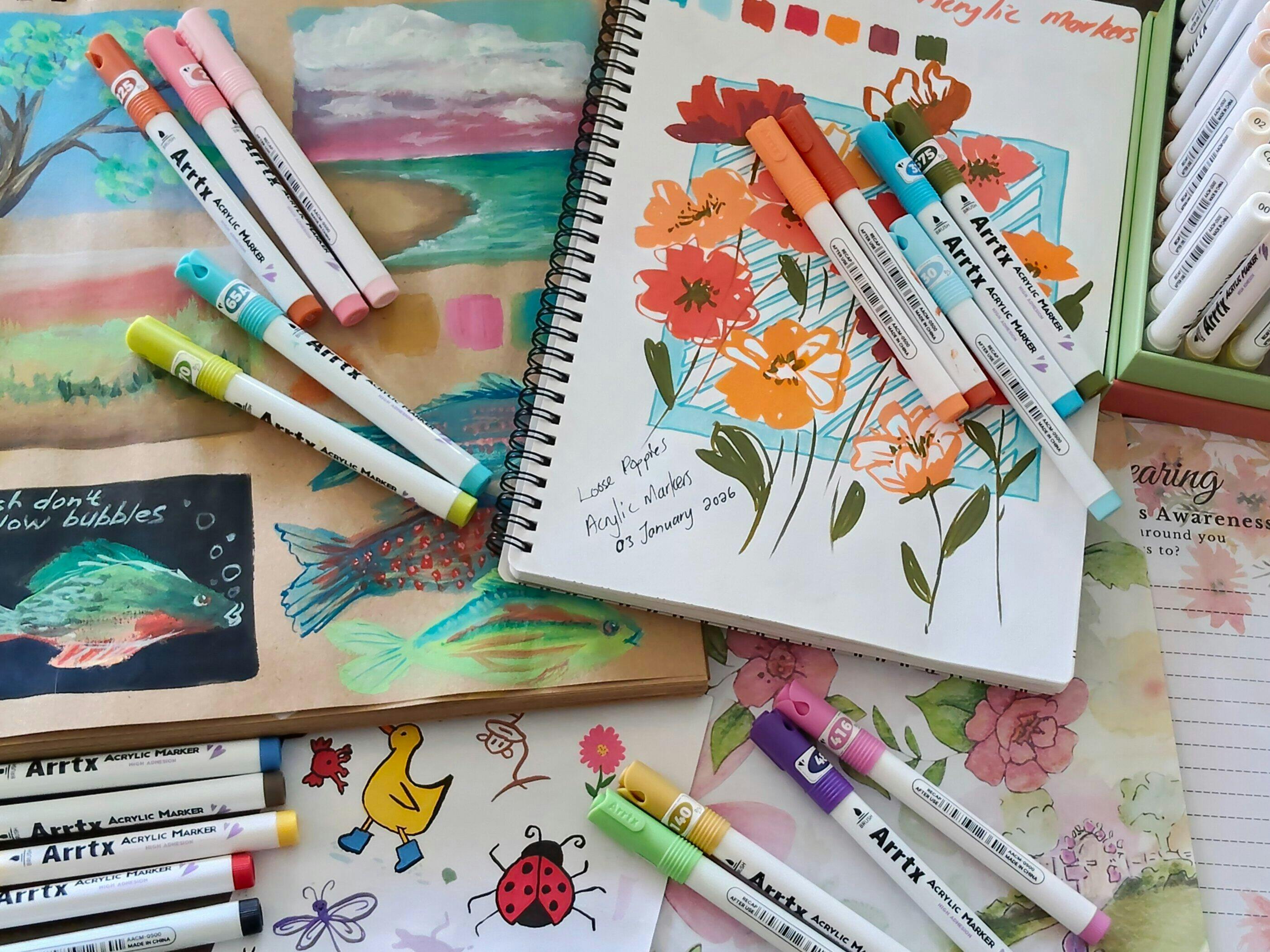 • Non-toxic and Safe: Arrtx drawing markers set adopts water-based environmental protection pigment ink, which is non-toxic, tasteless, waterproof, and high temperature resistant. High-quality certificated ink makes these painting pens safe and suitable for both kids and adults for all kinds of DIY paintings.