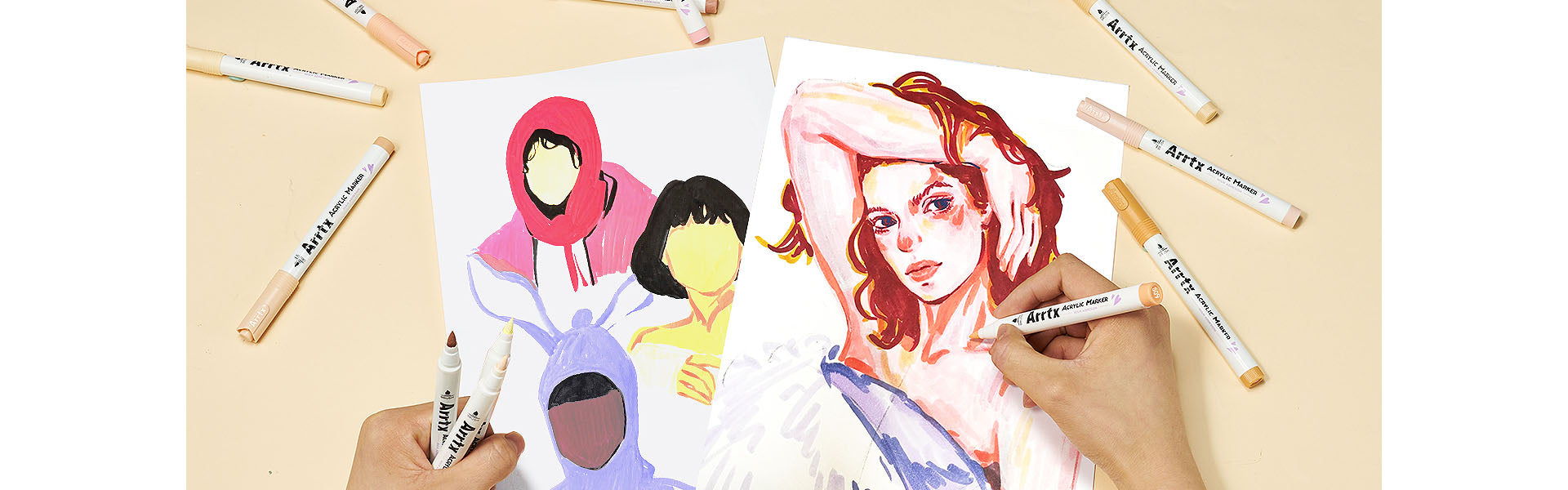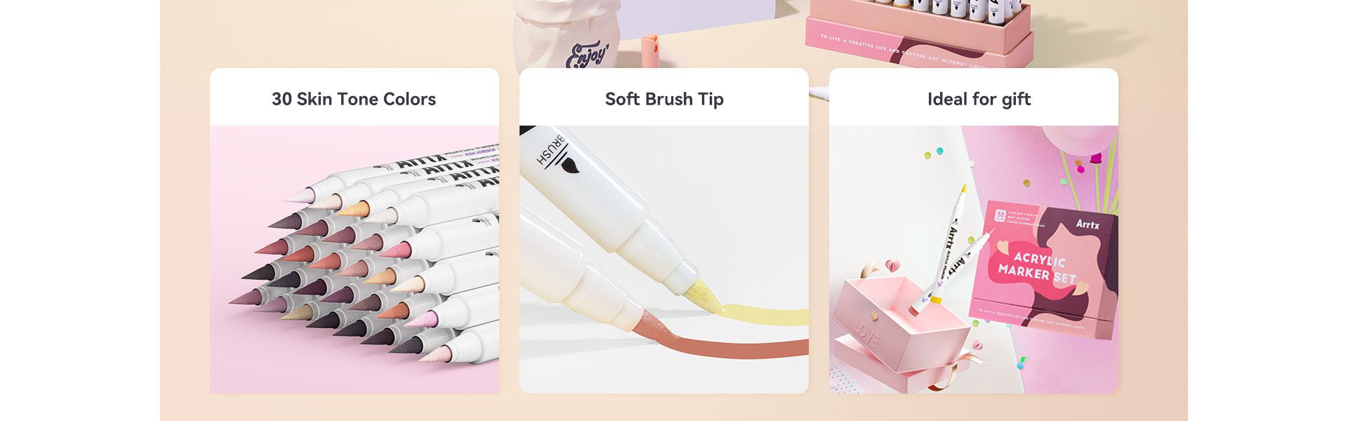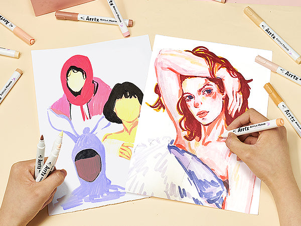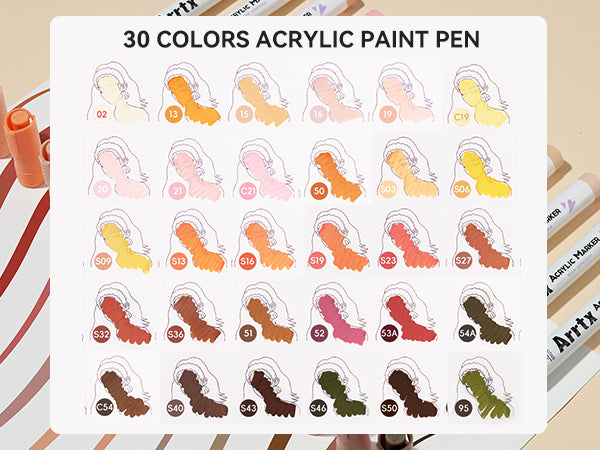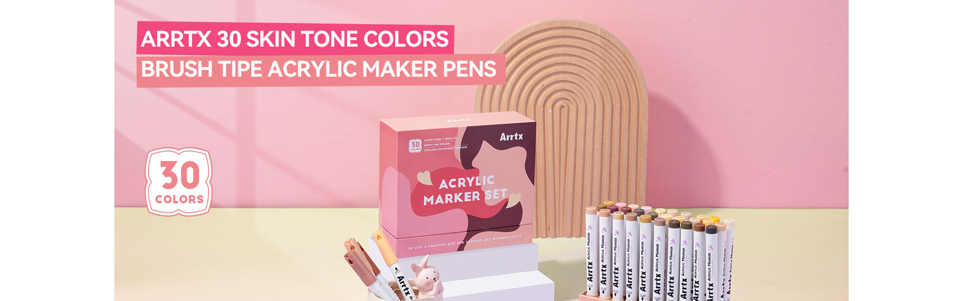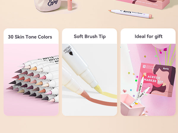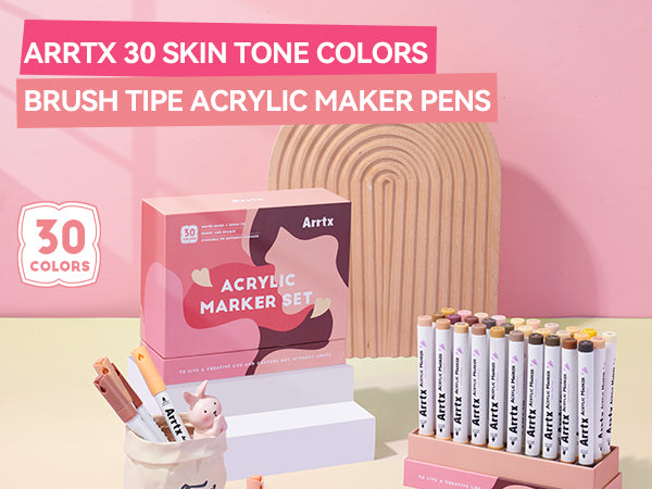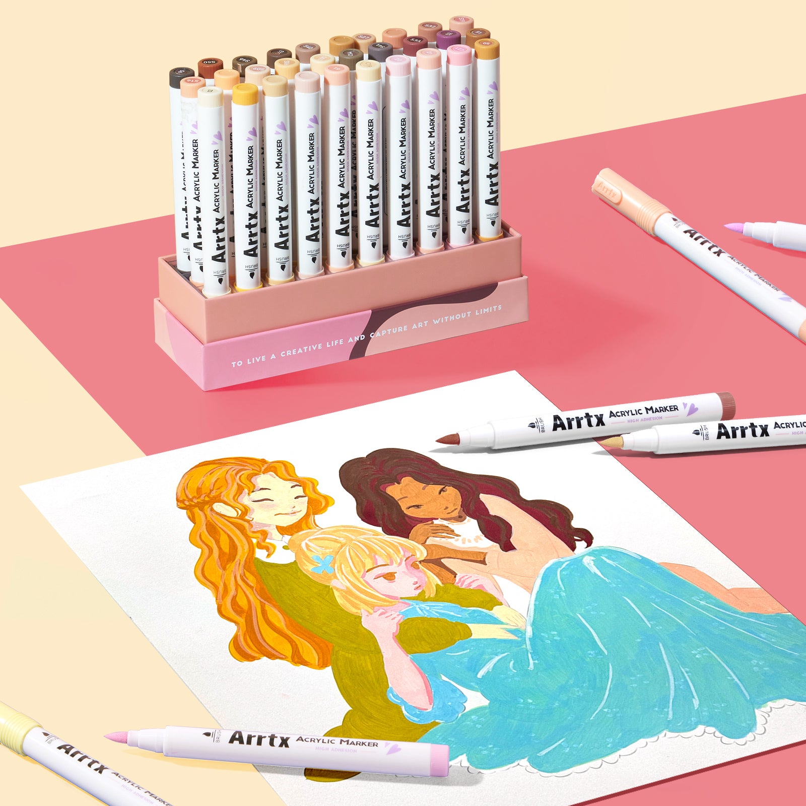 Arrtx 30C Colors Acrylic Markers Skin Tone Paint Pens Brush Tip