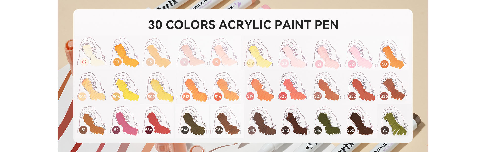 - 🎨 Versatile Brush Tips: Our 30-color skin-tone acrylic markers feature brush tips that can create lines ranging from 1 to 6MM in width. Whether you're doing fine details or bold strokes, these markers have got you covered.