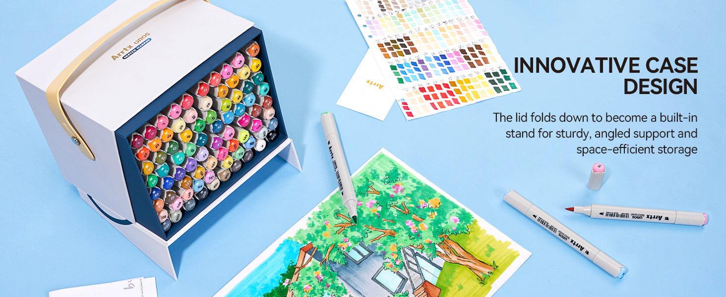 All of the pens are stored in a portable box that has three stable grids with 80 wells to keep the markers always stay tidy and organized, and easy to get the right colors.