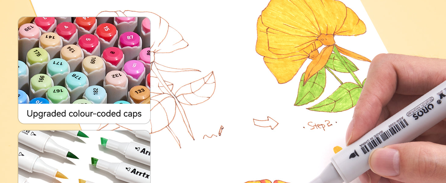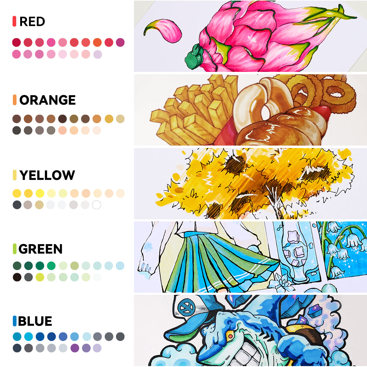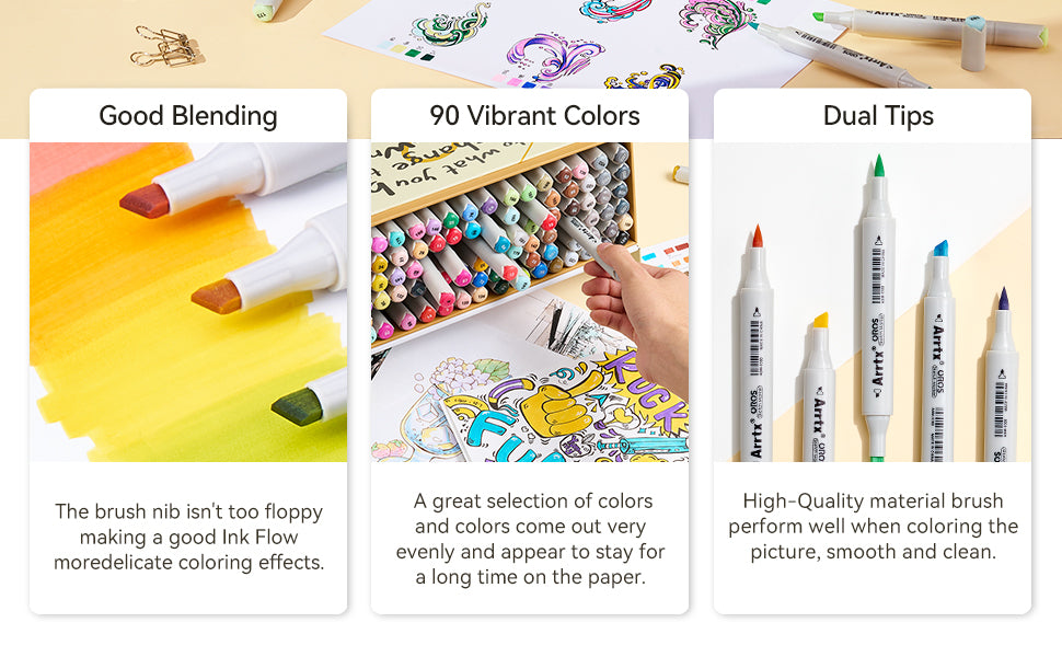 High-quality alcohol-based ink: its good blending capability to achieve better tonal gradation, creating a nice smooth transition, and also drying out rapidly without blotches or smudges.