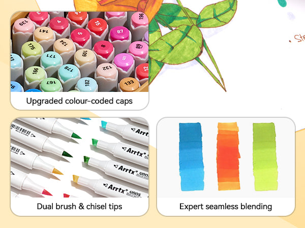 - 【Professional Art Markers】: all of the Arrtx OROS series markers use durable quality fiber pen tips, highly pigmented, high-quality alcohol-based ink, we dedicated to providing quality markers for artists, designers, painters, crafters, art students, and more.